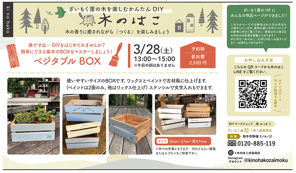 - 2月のDIYワークショップ「木のはこ」