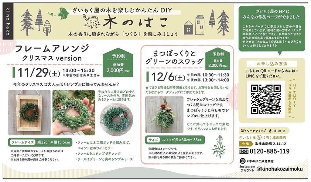- 2025/10/3011月と12月のDIYワークショップ「木のはこ」